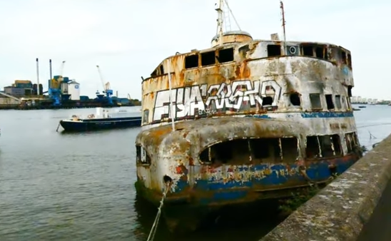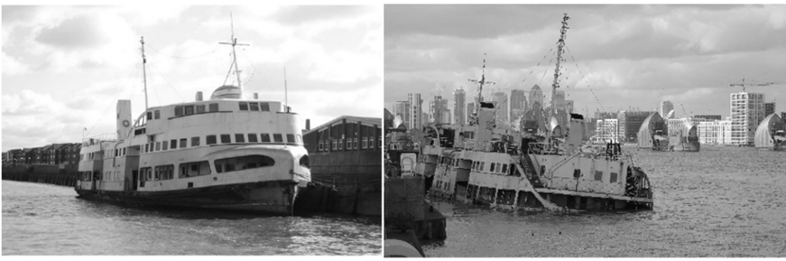 In 2002 the vessel was towed from Cardiff to a berth on the River Thames near Woolwich, awaiting a possible refit as a floating nightclub. Here she continued to deteriorate for another eight years!